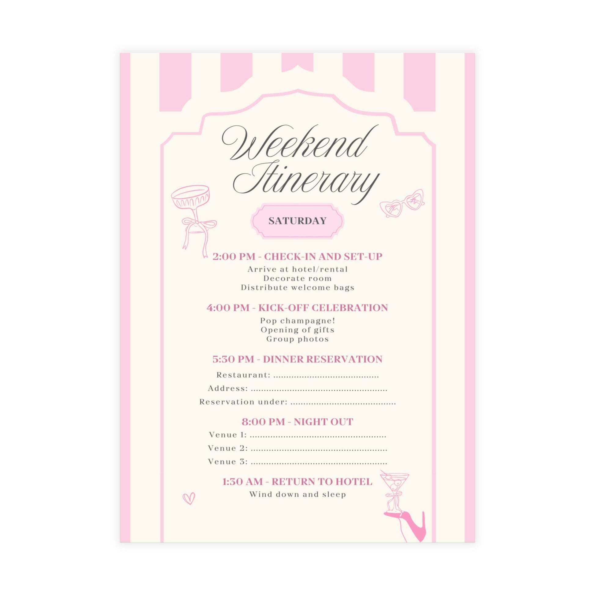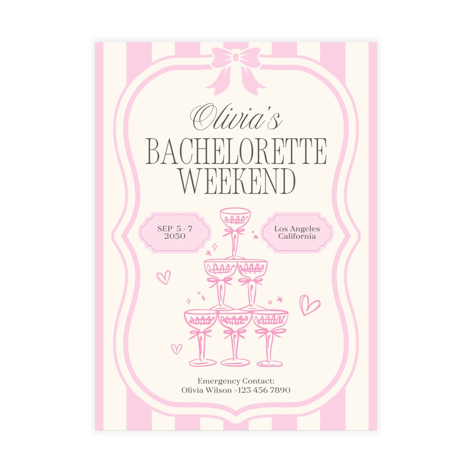Champagne Striped Pink Bachelorette Invitations
